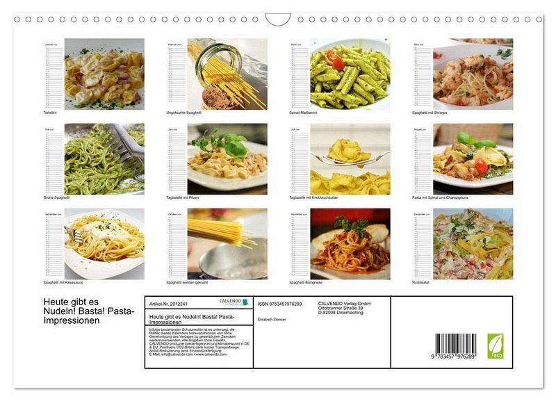 QUALITÄT - Hochwertiger Fotokalender mit 12 wunderschönen Motiven auf lichtbeständigem Bilderdruckpapier, robuste Spiralbindung mit Aufhängebügel.NACHHALTIG - deutliche Abfallreduzierung durch bedarfsgerechte Einzelstückfertigung, umweltfreundliches FSC-zertifiziertes Papier, Produktion in Deutschland, klimabewusste Logistik.PERFEKTES GESCHENK - Kalender für Freunde und Familie, für Kinder und Erwachsene, jung und alt, zu Weihnachten, Geburtstag oder zwischendurch.PERFEKTES GESCHENK - Kalender für Freunde und Familie, für Erwachsene, zu Weihnachten, Geburtstag oder zwischendurch.Cremige Pasta-Gerichte für Liebhaber der italienischen Küche von Autor(in): Elisabeth Stanzer