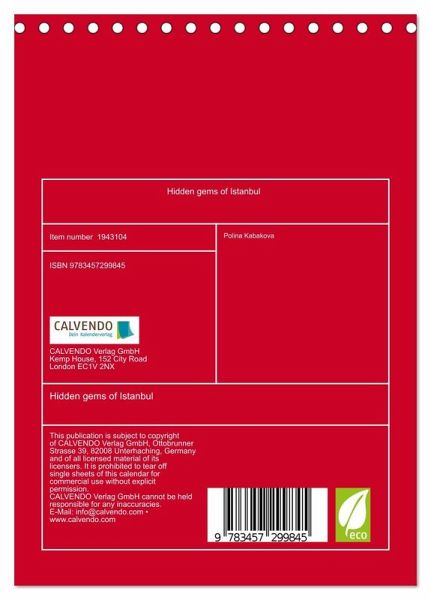 QUALITY - High-quality photo calendar with 12 beautiful images on light-resistant paper, robust spiral binding.SUSTAINABLE - Significant waste reduction due to print-on-demand production, environmentally friendly FSC-certified paper, produced locally, climate-conscious logistical processes.PERFECT GIFT - calendars for friends and family, for children, all ages and all occasions, from Christmas to birthdays and everything in between.LOTS OF CHOICE - Wall calendars in different sizes (DIN A4 and DIN A3), for any topic and personal taste, featuring photography, painting and illustrations.Istanbul - The City of Two Continents von Autor(in): Polina Kabakova