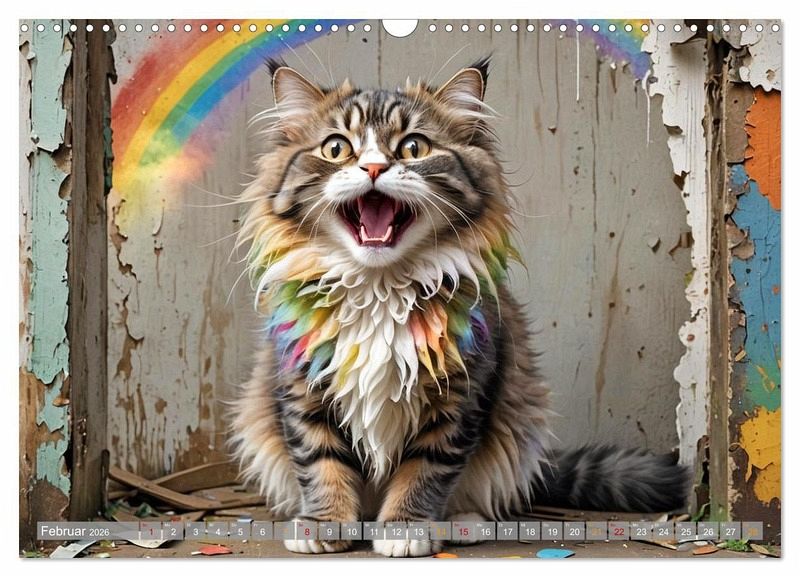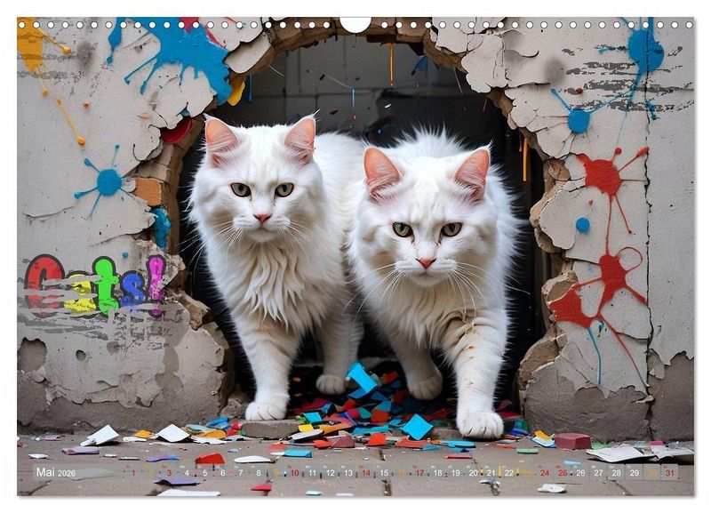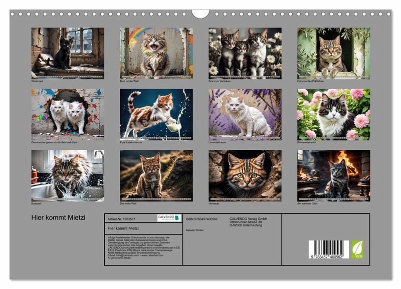 Ein Kalender mit liebevoll kreierten KI- Bilder, jeden Monat aufs neue erlebt. Katzen zum Verlieben.