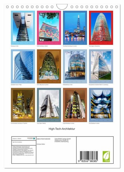 QUALITÄT - Hochwertiger Fotokalender mit 12 wunderschönen Motiven auf lichtbeständigem Bilderdruckpapier, robuste Spiralbindung mit Aufhängebügel.NACHHALTIG - deutliche Abfallreduzierung durch bedarfsgerechte Einzelstückfertigung, umweltfreundliches FSC-zertifiziertes Papier, Produktion in Deutschland, klimabewusste Logistik.PERFEKTES GESCHENK - Kalender für Freunde und Familie, für Kinder und Erwachsene, jung und alt, zu Weihnachten, Geburtstag oder zwischendurch.VIELFALT - Bildkalender in verschiedenen Formaten, z.B. DIN A5, DIN A4, DIN A3 sowie DIN A2. Ob Naturmotiv, Gemälde oder Fotos, ideal für ein persönliches Wohlfühlambiente.Bildersammlung von Beispielen der High-Tech-Architektur von Autor(in): Christian Müller