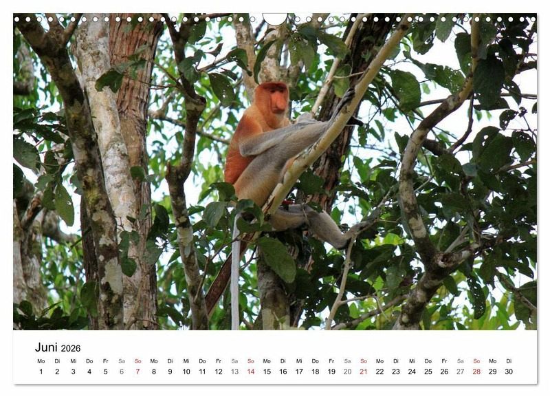 Juni: Nasenaffe am Fluss Kinabatangan, Sabah auf Borneo, Malaysia