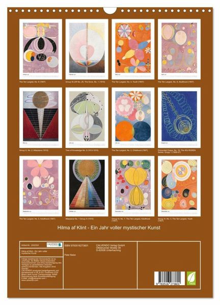 QUALITÄT - Hochwertiger Fotokalender mit 12 wunderschönen Motiven auf lichtbeständigem Bilderdruckpapier, robuste Spiralbindung mit Aufhängebügel.NACHHALTIG - deutliche Abfallreduzierung durch bedarfsgerechte Einzelstückfertigung, umweltfreundliches FSC-zertifiziertes Papier, Produktion in Deutschland, klimabewusste Logistik.PERFEKTES GESCHENK - Kalender für Freunde und Familie, für Kinder und Erwachsene, jung und alt, zu Weihnachten, Geburtstag oder zwischendurch.VIELFALT - Bildkalender in verschiedenen Formaten, z.B. DIN A5, DIN A4, DIN A3 sowie DIN A2. Ob Naturmotiv, Gemälde oder Fotos, ideal für ein persönliches Wohlfühlambiente.Erlebe die mystische Kunst von Hilma af Klint Monat für Monat in unserem Kalender von Autor(in): Peter Balan