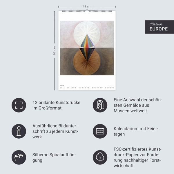 - Sensationelle Wiederentdeckung der vergessenen schwedischen Malerin: Der neue Jahres-Wandkalender 2026 von Hilma af Klint- Große Bildformate, farbige Abstraktionen: zwölf ausgewählte Motive der Pionierin der abstrakten Malerei- Großer Wandkalender mit Kunstdrucken in beeindruckender Qualität: Kalender XL im Format 46 x 55 cm- Immer das richtige Geschenk für Kunstliebhaber: Die Kunstkalender von Weingarten im Athesia KalenderverlagSprachen: Deutsch, Englisch