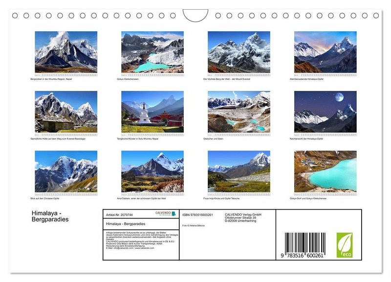 Erleben Sie die unvergleichliche Schönheit und Majestät der Himalaya-Berge in der Khumbu- und Everest-Region im Osten Nepals. Dieser Kalender zeigt wunderschöne Bildern in einem Gebiet von außergewöhnlicher natürlicher Schönheit im Himalaya. Genießen Sie das ganze Jahr über unsere fantastischen 12-Monatskalender. Ein ideales Geschenk für Natur- und Reiseliebhaber, Freunde, Weihnachts- oder Geburtstagsgeschenk und alle anderen. Bestellen Sie noch heute.