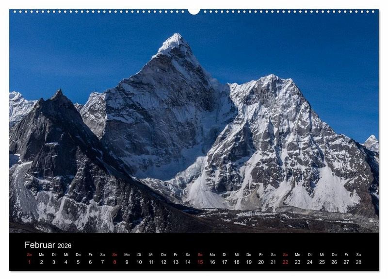 Januar: Mt. Everest (8848 m) mit Nuptse-Eiswand