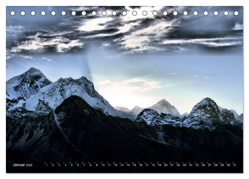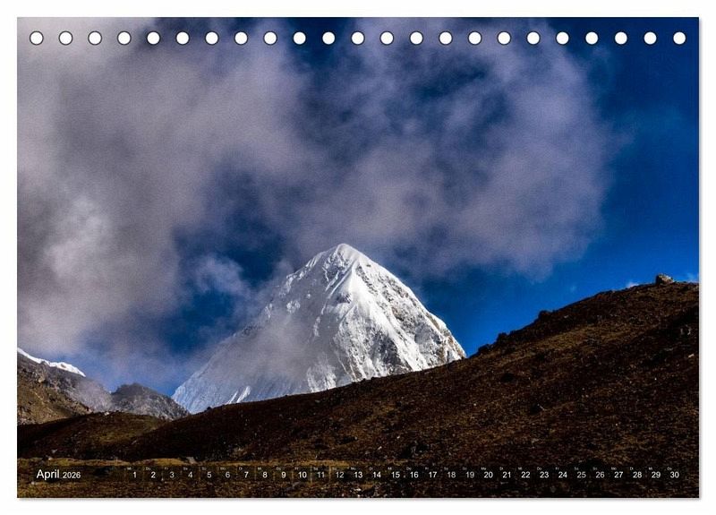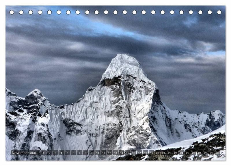 Die Aufnahmen des Kalenders entstanden auf einer 3 wöchigen Trekking Tour durch den Sagarmatha Nationalpark in Nepal mit Besteigung des Gokyo Ri, Kalar Patthar und Island Peak, von denen die ersten beiden speziell gute Ausblicke auf die Himalaya-Berge, insbesondere auf den Mt. Everest bieten. Aber auch die normalen Trekking Routen faszinieren bereits durch die eindrückliche Szenerie der Himalaya-Riesen. Im Sagarmatha Nationalpark befinden sich 4 der höchsten Berge Nepals und der Erde: Mt. Everest, Lhotse, Lhotse Shar und Cho Oyu, ferner der Beau unter den Himalaya Riesen, der Ama Dablam.