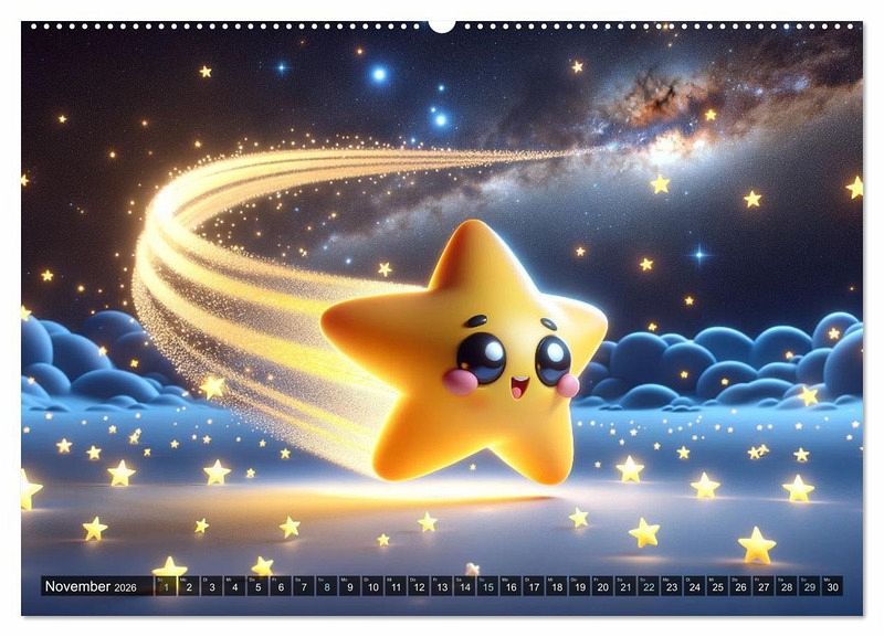 Entdecken Sie 'Himmelsfunken: Der kleine Stern und seine Reisen', einen einzigartigen Kalender voller Magie und Abenteuer. Jedes Blatt entführt in eine bezaubernde Welt, in der der kleine Stern neue Wunder des Kosmos erkundet. Jedes Motiv, erschaffen mit fortschrittlicher künstlicher Intelligenz, ist ein Kunstwerk, das die Fantasie anregt und Groß und Klein gleichermaßen erfreut. Ein Kalender, der nicht nur die Zeit anzeigt, sondern jeden Monat zu einer Reise durch die Sterne macht.