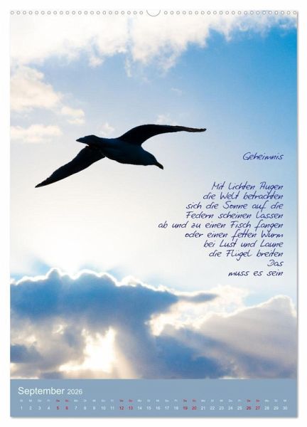 September: Geheimnis, Möwe vor stürmischen Wolken