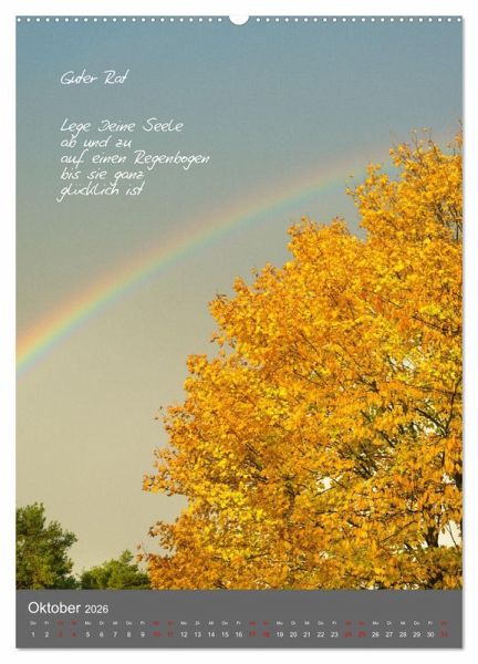 Oktober: Guter Rat, Regenbogen über herbstlich gefärbten Bäumen