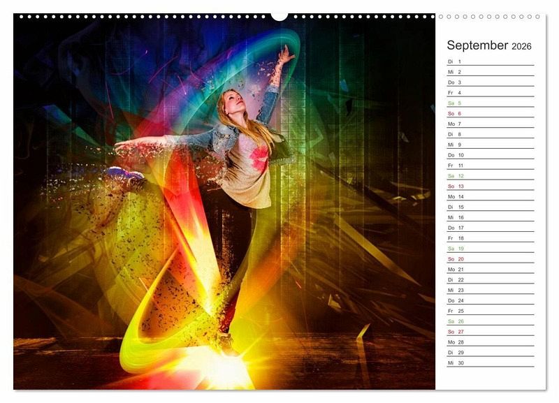 Entstanden vor rund 40 Jahren ist der Hip-Hop-Tanz eine Kombination aus verschiedenen Tanzarten. Damals tanzten vor allem afroamerikanische Jugendliche aus ärmeren Wohngegenden zu Hip-Hop Musik auf den Straßen. Durch Kinofilme wurden die Straßentänze weltweit berühmt. Heute ist Hip-Hop ein richtiger Sport, mit Wettkämpfen, Vereinen und allem, was dazu gehört. Der Fotograf & DigitalArt Künstler Dirk Meutzner hat sich diesem Thema angenommen und die Tänzerinnen und Tänzer in phantastisch abstrakte Welten projiziert. Herausgekommen ist dieser einmalig wundervolle Kalender mit Planerfunktion.