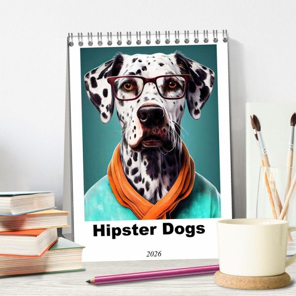 QUALITY - High-quality photo calendar with 12 beautiful images on light-resistant paper, robust spiral binding.SUSTAINABLE - Significant waste reduction due to print-on-demand production, environmentally friendly FSC-certified paper, produced locally, climate-conscious logistical processes.PERFECT GIFT - calendars for friends and family, for children, all ages and all occasions, from Christmas to birthdays and everything in between.LOTS OF CHOICE - Wall calendars in different sizes (DIN A4 and DIN A3), for any topic and personal taste, featuring photography, painting and illustrations.The Hipster Dogs calendar features stylish and trendy canines with a unique and quirky personality. von Autor(in): JBJart