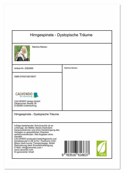 QUALITÄT - Hochwertiger Fotokalender mit 12 wunderschönen Motiven auf lichtbeständigem Bilderdruckpapier, robuste Spiralbindung.NACHHALTIG - deutliche Abfallreduzierung durch bedarfsgerechte Einzelstückfertigung, umweltfreundliches FSC-zertifiziertes Papier, Produktion in Deutschland, klimabewusste Logistik.PERFEKTES GESCHENK - Kalender für Freunde und Familie, für Kinder und Erwachsene,jung und alt, zu Weihnachten, Geburtstag oder zwischendurch.VIELFALT - Bildkalender in verschiedenen Formaten, z.B. DIN A5, DIN A4, DIN A3 sowie DIN A2. Ob Naturmotiv, Gemälde oder Fotos, ideal für ein persönliches Wohlfühlambiente.Für alle, denen ein bisschen neuronaler Wahnsinn an der Wand genau das richtige Maß an Realität bietet. von Autor(in): Martina Marten