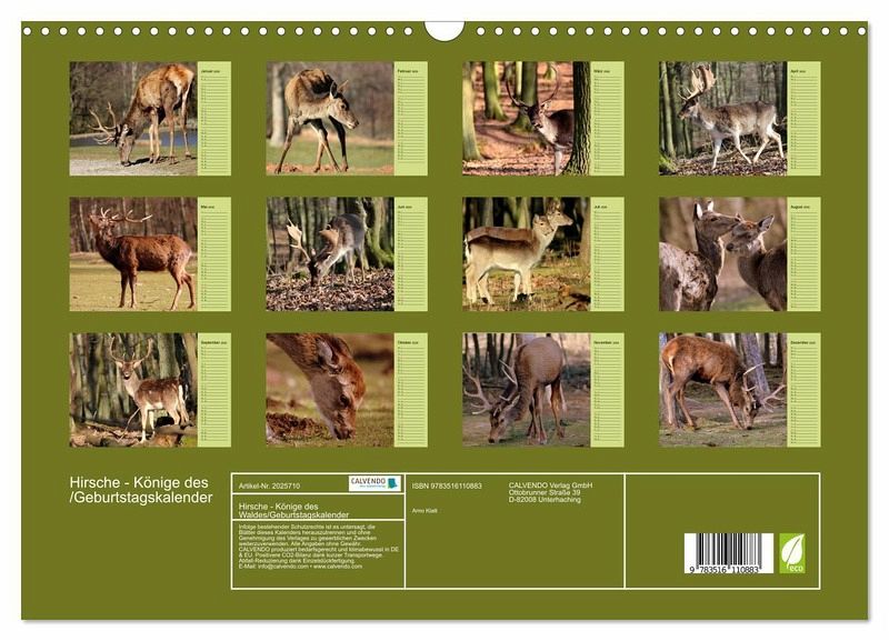 QUALITÄT - Hochwertiger Fotokalender mit 12 wunderschönen Motiven auf lichtbeständigem Bilderdruckpapier, robuste Spiralbindung mit Aufhängebügel.NACHHALTIG - deutliche Abfallreduzierung durch bedarfsgerechte Einzelstückfertigung, umweltfreundliches FSC-zertifiziertes Papier, Produktion in Deutschland, klimabewusste Logistik.PERFEKTES GESCHENK - Kalender für Freunde und Familie, für Kinder und Erwachsene, jung und alt, zu Weihnachten, Geburtstag oder zwischendurch.VIELFALT - Bildkalender in verschiedenen Formaten, z.B. DIN A5, DIN A4, DIN A3 sowie DIN A2. Ob Naturmotiv, Gemälde oder Fotos, ideal für ein persönliches Wohlfühlambiente.Hirsche. Die Könige in den Wäldern. Majestätisch und schön. von Autor(in): Arno Klatt