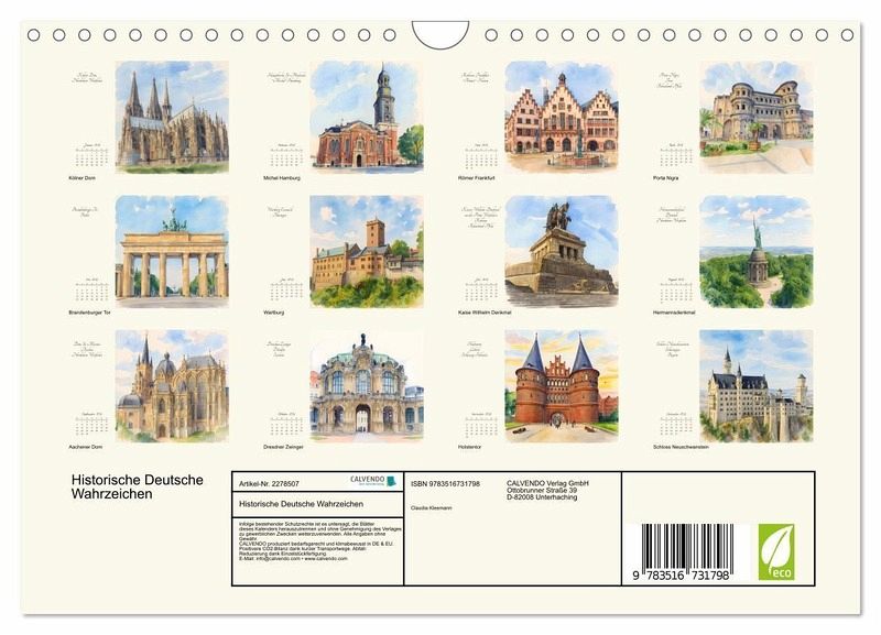 QUALITÄT - Hochwertiger Fotokalender mit 12 wunderschönen Motiven auf lichtbeständigem Bilderdruckpapier, robuste Spiralbindung mit Aufhängebügel.NACHHALTIG - deutliche Abfallreduzierung durch bedarfsgerechte Einzelstückfertigung, umweltfreundliches FSC-zertifiziertes Papier, Produktion in Deutschland, klimabewusste Logistik.PERFEKTES GESCHENK - Kalender für Freunde und Familie, für Kinder und Erwachsene, jung und alt, zu Weihnachten, Geburtstag oder zwischendurch.VIELFALT - Bildkalender in verschiedenen Formaten, z.B. DIN A5, DIN A4, DIN A3 sowie DIN A2. Ob Naturmotiv, Gemälde oder Fotos, ideal für ein persönliches Wohlfühlambiente.Reise durch Deutschland im zarten Aquarell-Stil von Autor(in): Claudia Kleemann