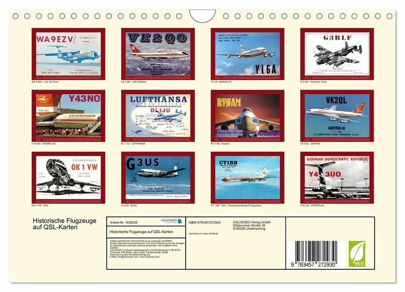 QUALITÄT - Hochwertiger Fotokalender mit 12 wunderschönen Motiven auf lichtbeständigem Bilderdruckpapier, robuste Spiralbindung mit Aufhängebügel.NACHHALTIG - deutliche Abfallreduzierung durch bedarfsgerechte Einzelstückfertigung, umweltfreundliches FSC-zertifiziertes Papier, Produktion in Deutschland, klimabewusste Logistik.PERFEKTES GESCHENK - Kalender für Freunde und Familie, für Kinder und Erwachsene, jung und alt, zu Weihnachten, Geburtstag oder zwischendurch.VIELFALT - Bildkalender in verschiedenen Formaten, z.B. DIN A5, DIN A4, DIN A3 sowie DIN A2. Ob Naturmotiv, Gemälde oder Fotos, ideal für ein persönliches Wohlfühlambiente.Flugzeugmotive auf Empfangsbestätigungen von Funkamateuren von Autor(in): Henning von Loewis of Menar