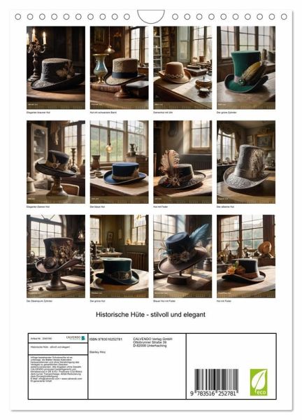 QUALITÄT - Hochwertiger Fotokalender mit 12 wunderschönen Motiven auf lichtbeständigem Bilderdruckpapier, robuste Spiralbindung mit Aufhängebügel.NACHHALTIG - deutliche Abfallreduzierung durch bedarfsgerechte Einzelstückfertigung, umweltfreundliches FSC-zertifiziertes Papier, Produktion in Deutschland, klimabewusste Logistik.PERFEKTES GESCHENK - Kalender für Freunde und Familie, für Kinder und Erwachsene, jung und alt, zu Weihnachten, Geburtstag oder zwischendurch.VIELFALT - Bildkalender in verschiedenen Formaten, z.B. DIN A5, DIN A4, DIN A3 sowie DIN A2. Ob Naturmotiv, Gemälde oder Fotos, ideal für ein persönliches Wohlfühlambiente.Elegante Kopfbedeckungen vergangener Epochen, kunstvoll gestaltet und zeitlos schön von Autor(in): Stanley Hinz