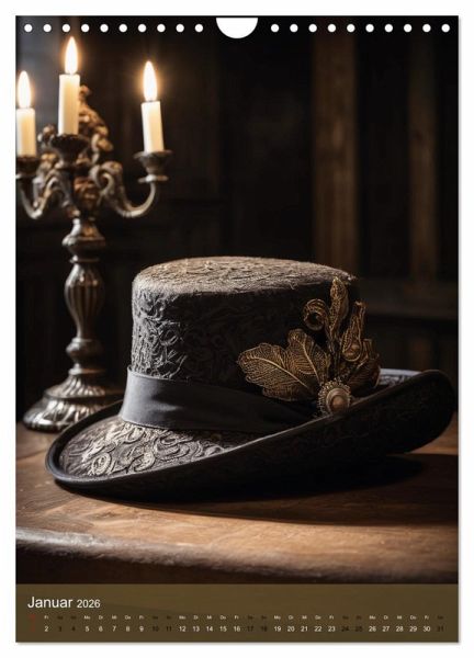 Tauchen Sie ein in die faszinierende Welt historischer Kopfbedeckungen mit unserem einzigartigen Wandkalender. Jede Seite enthüllt eine kunstvoll gestaltete Kopfbedeckung aus vergangenen Epochen, die Eleganz und Stil verkörpert. Von prächtigen Hüten s bis hin zu den raffinierten Designs - dieser KI generierte Kalender ist eine Hommage an die zeitlose Schönheit und das handwerkliche Können vergangener Zeiten. Perfekt für Liebhaber von Modegeschichte und stilvollen Accessoires, bringt dieser Kalender einen Hauch von Nostalgie und Klasse in Ihr Zuhause oder Büro. Lassen Sie sich jeden Monat aufs…mehr