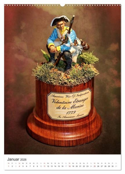 Den meisten Menschen ist Modellbau nicht fremd. Entweder ist es ihr eigenes Hobby oder sie kennen jemanden der z.B. Flugzeug, Autos oder Schiffe in verschiedenen Maßstäben zusammenbaut. Figuren-Modellbau ist allerdings nicht so bekannt und kaum jemand kennt diese Art des Hobbys. Ein Hobby für Leute, die über eine ruhige Hand, gute Augen und starke Nerven verfügen sollten. Die Figuren bestehen aus Zinn oder Kunststoff. Als Rohmodell sind sie in Einzelteile zerlegt, die alle noch bearbeitet, zusammengesetzt und anschließend von Hand bemalt werden. Die in diesem Kalender gezeigten Figuren haben eine Größe zwischen 54 - 120mm. Und selbst Kleinteile wie Gürtelschnallen, Waffen oder die Augen werden mit feinsten Pinseln bemalt. Dazu werden Sockel oder ganze Dioramen mit passenden Landschaften bzw. Szenerien ebenfalls per Hand geschaffen um die Figuren zum Leben zu erwecken. Hinzu kommt, dass alle Details wie Kleidung, Farben und Waffen sich strikt an original historischen Vorlagen orientieren. In diesen Figuren steckt viel Zeit und Liebe zum Detail.