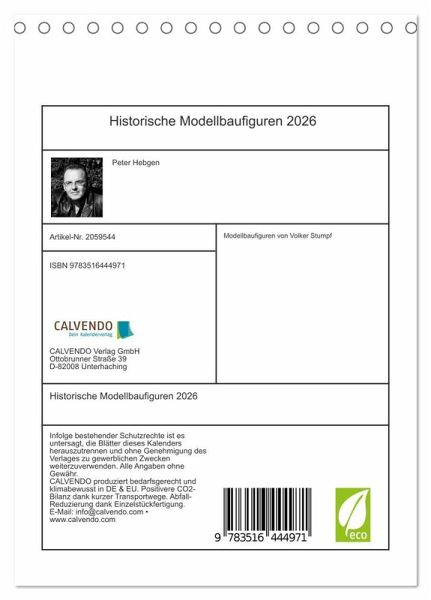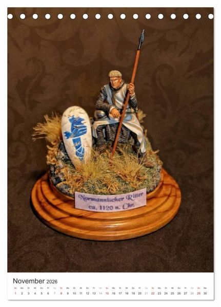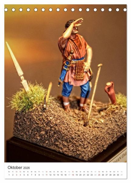 Den meisten Menschen ist Modellbau nicht fremd. Entweder ist es ihr eigenes Hobby oder sie kennen jemanden der z.B. Flugzeug, Autos oder Schiffe in verschiedenen Maßstäben zusammenbaut. Figuren-Modellbau ist allerdings nicht so bekannt und kaum jemand kennt diese Art des Hobbys. Ein Hobby für Leute, die über eine ruhige Hand, gute Augen und starke Nerven verfügen sollten. Die Figuren bestehen aus Zinn oder Kunststoff. Als Rohmodell sind sie in Einzelteile zerlegt, die alle noch bearbeitet, zusammengesetzt und anschließend von Hand bemalt werden. Die in diesem Kalender gezeigten Figuren haben eine Größe zwischen 54 - 120mm. Und selbst Kleinteile wie Gürtelschnallen, Waffen oder die Augen werden mit feinsten Pinseln bemalt. Dazu werden Sockel oder ganze Dioramen mit passenden Landschaften bzw. Szenerien ebenfalls per Hand geschaffen um die Figuren zum Leben zu erwecken. Hinzu kommt, dass alle Details wie Kleidung, Farben und Waffen sich strikt an original historischen Vorlagen orientieren. In diesen Figuren steckt viel Zeit und Liebe zum Detail.
