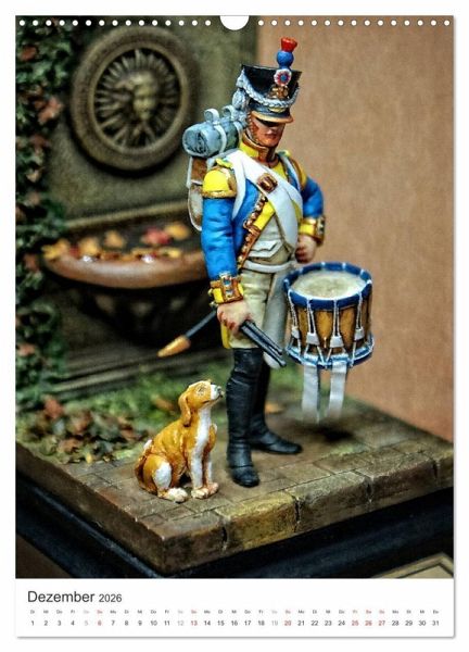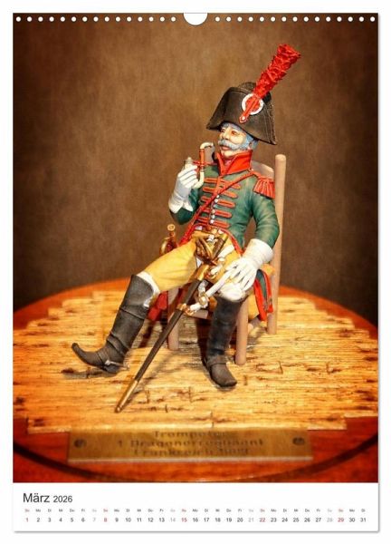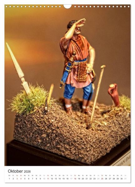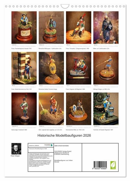Den meisten Menschen ist Modellbau nicht fremd. Entweder ist es ihr eigenes Hobby oder sie kennen jemanden der z.B. Flugzeug, Autos oder Schiffe in verschiedenen Maßstäben zusammenbaut. Figuren-Modellbau ist allerdings nicht so bekannt und kaum jemand kennt diese Art des Hobbys. Ein Hobby für Leute, die über eine ruhige Hand, gute Augen und starke Nerven verfügen sollten. Die Figuren bestehen aus Zinn oder Kunststoff. Als Rohmodell sind sie in Einzelteile zerlegt, die alle noch bearbeitet, zusammengesetzt und anschließend von Hand bemalt werden. Die in diesem Kalender gezeigten Figuren haben eine Größe zwischen 54 - 120mm. Und selbst Kleinteile wie Gürtelschnallen, Waffen oder die Augen werden mit feinsten Pinseln bemalt. Dazu werden Sockel oder ganze Dioramen mit passenden Landschaften bzw. Szenerien ebenfalls per Hand geschaffen um die Figuren zum Leben zu erwecken. Hinzu kommt, dass alle Details wie Kleidung, Farben und Waffen sich strikt an original historischen Vorlagen orientieren. In diesen Figuren steckt viel Zeit und Liebe zum Detail.