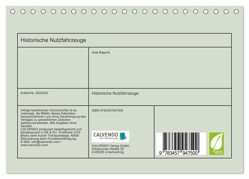 QUALITÄT - Hochwertiger Fotokalender mit 12 wunderschönen Motiven auf lichtbeständigem Bilderdruckpapier, robuste Spiralbindung.NACHHALTIG - deutliche Abfallreduzierung durch bedarfsgerechte Einzelstückfertigung, umweltfreundliches FSC-zertifiziertes Papier, Produktion in Deutschland, klimabewusste Logistik.PERFEKTES GESCHENK - Kalender für Freunde und Familie, für Kinder und Erwachsene, jung und alt, zu Weihnachten, Geburtstag oder zwischendurch.VIELFALT - Bildkalender in verschiedenen Formaten, z.B. DIN A5, DIN A4, DIN A3 sowie DIN A2. Ob Naturmotiv, Gemälde oder Fotos, ideal für ein persönliches Wohlfühlambiente.Eine tolle abwechslungsreiche Darbietung verschiedenster historischer Nutzfahrzeuge von Autor(in): Anja Bagunk