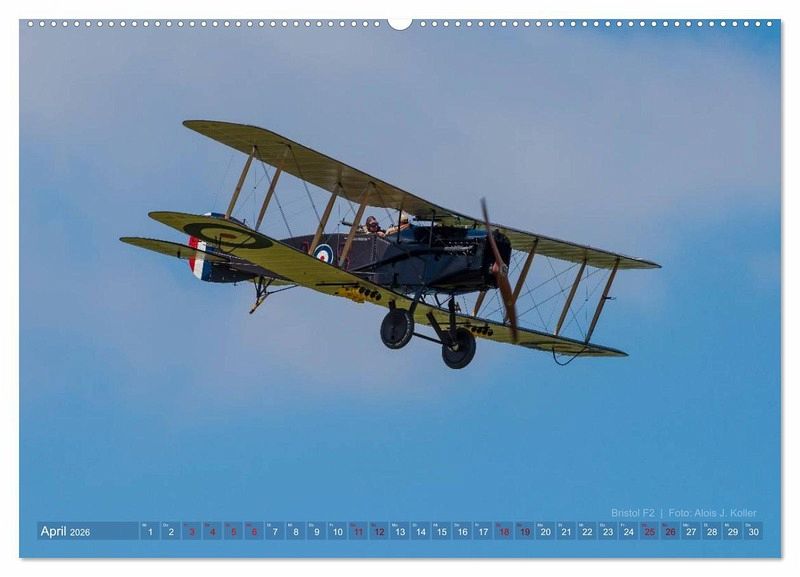 Die Bilder zeigen noch flugtüchtig erhaltene Exemplare aviatischer Geschichte. Vom fragilen Blériot bis zum schlagkräftigen und rasant schnellen Hawker Sea Fury zeigen die Kalenderbilder in eindrücklichen Aufnahmen Flugzeuggeschichte.