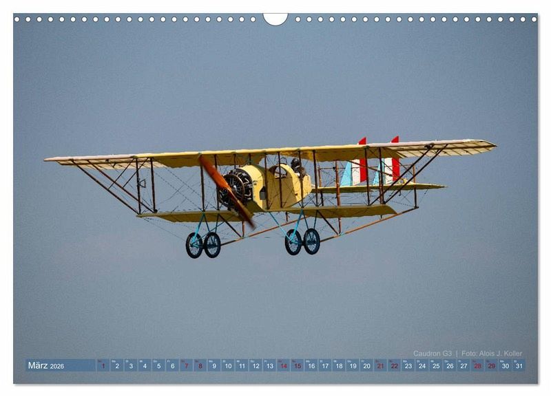 Die Bilder zeigen noch flugtüchtig erhaltene Exemplare aviatischer Geschichte. Vom fragilen Blériot bis zum schlagkräftigen und rasant schnellen Hawker Sea Fury zeigen die Kalenderbilder in eindrücklichen Aufnahmen Flugzeuggeschichte.