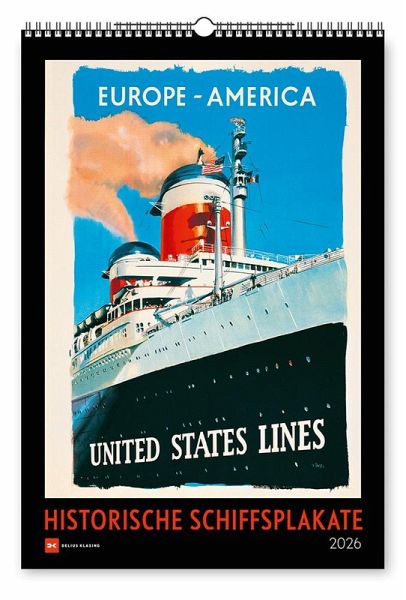 ist dabei vorrangig den Nordamerika-Reisen gewidmet. Die zwölf Monatsblätter zeigen Plakate von…mehrDie nostalgischen und dekorativen Wandkalender mit den historischen Plakaten aus dem Delius Klasing Verlag erfreuen sich bei Kalenderfreunden seit Jahren einer großen Beliebtheit. Wie bereits im Vorjahr gibt es wieder Schiffsplakate, die eine frische Brise in die Wohnung bringen.