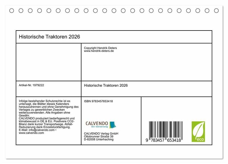 QUALITÄT - Hochwertiger Fotokalender mit 12 wunderschönen Motiven auf lichtbeständigem Bilderdruckpapier, robuste Spiralbindung.NACHHALTIG - deutliche Abfallreduzierung durch bedarfsgerechte Einzelstückfertigung, umweltfreundliches FSC-zertifiziertes Papier, Produktion in Deutschland, klimabewusste Logistik.PERFEKTES GESCHENK - Kalender für Freunde und Familie, für Kinder und Erwachsene, jung und alt, zu Weihnachten, Geburtstag oder zwischendurch.VIELFALT - Bildkalender in verschiedenen Formaten, z.B. DIN A5, DIN A4, DIN A3 sowie DIN A2. Ob Naturmotiv, Gemälde oder Fotos, ideal für ein persönliches Wohlfühlambiente.Historische Traktoren von 1931 - 1965 von Autor(in): Hendrik Deters