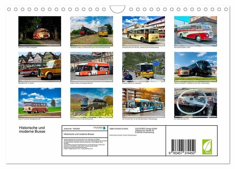 Jeder Bushersteller ist bestrebt, seinen Modellen ein individuelles Gesicht zu geben. Darüber hinaus gibt es viele Varianten, die von verschiedenen Karosseriebetrieben stammen. In diesem Kalender sind einige liebevoll restaurierte Oldtimer sowie moderne Busse von heute versammelt. Ein Busunternehmen aus Weilheim an der Teck fühlt sich der Traditionspflege besonders verplichtet.