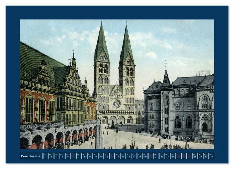 Dieser Kalender enthält eine Zusammenstellung reprofotografisch bearbeiteter Ansichtskarten von 1888 bis 1918 mit Motiven aus dem historischen Bremen an der Weser. Alle Werke stammen von heute nicht mehr ermittelbaren Fotografen.