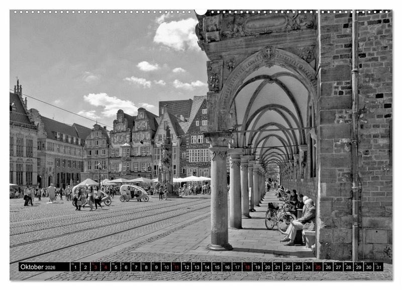 Die interessantesten Sehenswürdigkeiten zusammengestellt in diesem Kalender mit Fotos in HDR Qualität. Folgen sie uns in einer kleinen Stadtführung rund um den Marktplatz, ebenso in die berühmte Böttcherstraße mit ihrem vergoldeten Relief am Eingangstor, bis hin zum Schnoorviertel mit den kleinen Fachwerkhäuser in den engen, verwinkelten Gassen.
