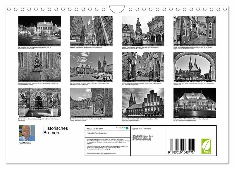 QUALITÄT - Hochwertiger Fotokalender mit 12 wunderschönen Motiven auf lichtbeständigem Bilderdruckpapier, robuste Spiralbindung mit Aufhängebügel.NACHHALTIG - deutliche Abfallreduzierung durch bedarfsgerechte Einzelstückfertigung, umweltfreundliches FSC-zertifiziertes Papier, Produktion in Deutschland, klimabewusste Logistik.PERFEKTES GESCHENK - Kalender für Freunde und Familie, für Kinder und Erwachsene, jung und alt, zu Weihnachten, Geburtstag oder zwischendurch.VIELFALT - Bildkalender in verschiedenen Formaten, z.B. DIN A5, DIN A4, DIN A3 sowie DIN A2. Ob Naturmotiv, Gemälde oder Fotos, ideal für ein persönliches Wohlfühlambiente.Machen Sie mit uns eine Stadtführung durch die historische Bremer Altstadt und erfahren Sie mehr über die schönsten Sehenswürdigkeiten von Autor(in): Paul Michalzik