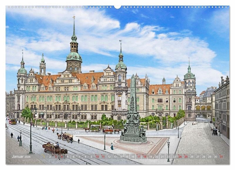 Die Stadt Dresden als das "Elbflorenz" war auch in den Jahren 1895 bis 1915 bunt und voller Leben. In diesem besonderen Kalender sehen Sie alte Photochromdrucke, die möglichst detailreich farblich restauriert und koloriert wurden. Sie sollen einen besonderen und lebendigen Einblick in den Alltag der Menschen zur Kaiserzeit geben, auch wenn in diesem Kalender nur eine sehr kleine Auswahl an bekannten Örtlichkeiten der Stadt zu sehen sind. Aber nie war diese alte Zeit um 1900 so lebendig. Eine Zeitreise in Bildern.