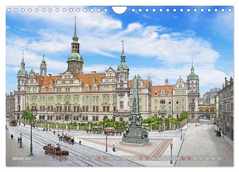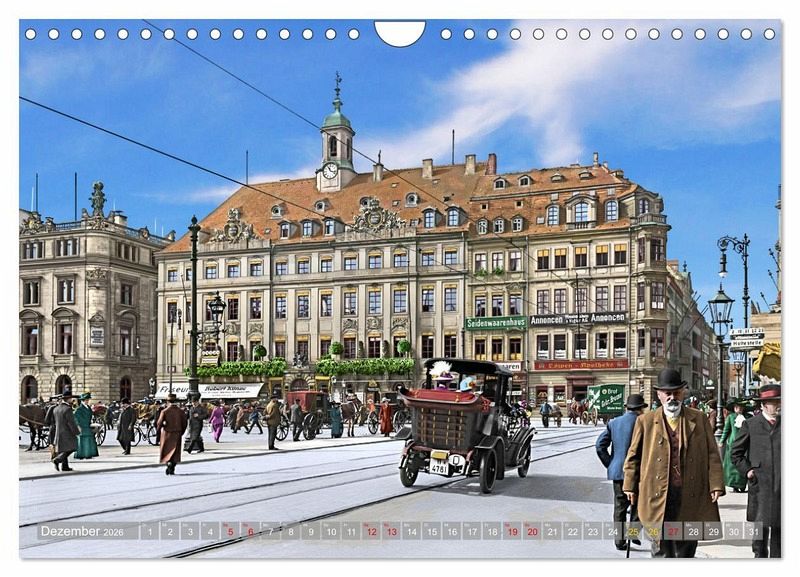 Die Stadt Dresden als das "Elbflorenz" war auch in den Jahren 1895 bis 1915 bunt und voller Leben. In diesem besonderen Kalender sehen Sie alte Photochromdrucke, die möglichst detailreich farblich restauriert und koloriert wurden. Sie sollen einen besonderen und lebendigen Einblick in den Alltag der Menschen zur Kaiserzeit geben, auch wenn in diesem Kalender nur eine sehr kleine Auswahl an bekannten Örtlichkeiten der Stadt zu sehen sind. Aber nie war diese alte Zeit um 1900 so lebendig. Eine Zeitreise in Bildern.