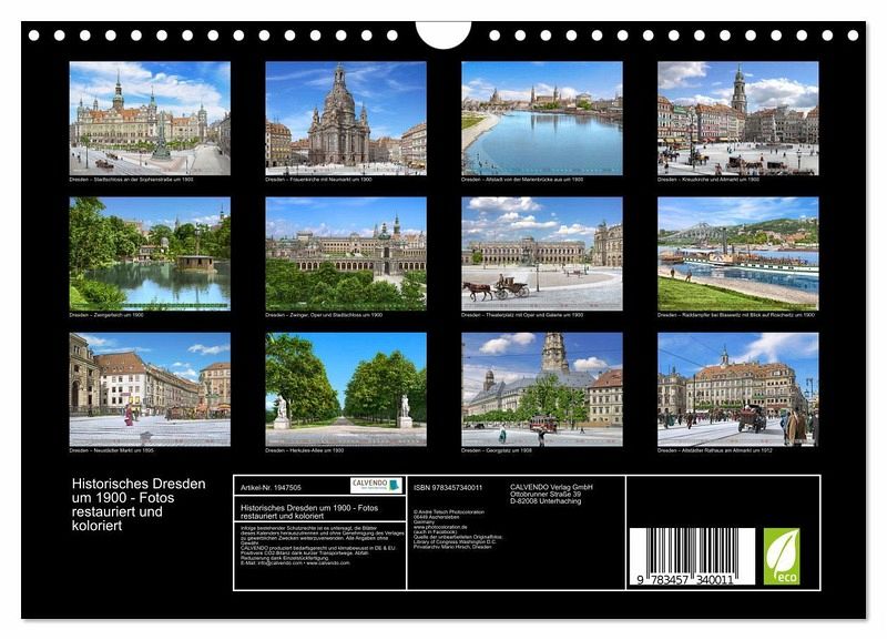 QUALITÄT - Hochwertiger Fotokalender mit 12 wunderschönen Motiven auf lichtbeständigem Bilderdruckpapier, robuste Spiralbindung mit Aufhängebügel.NACHHALTIG - deutliche Abfallreduzierung durch bedarfsgerechte Einzelstückfertigung, umweltfreundliches FSC-zertifiziertes Papier, Produktion in Deutschland, klimabewusste Logistik.PERFEKTES GESCHENK - Kalender für Freunde und Familie, für Kinder und Erwachsene, jung und alt, zu Weihnachten, Geburtstag oder zwischendurch.VIELFALT - Bildkalender in verschiedenen Formaten, z.B. DIN A5, DIN A4, DIN A3 sowie DIN A2. Ob Naturmotiv, Gemälde oder Fotos, ideal für ein persönliches Wohlfühlambiente.Die Stadt Dresden um das Jahr 1900 erwacht in lebendigen Farben zu neuem Leben. von Autor(in): André Tetsch