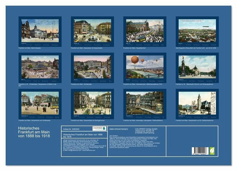 1888 bis 1918 mit Motiven aus dem historischen Frankfurt am Main. Insbesondere sind seltene Bilder der ehemeligen Judengasse und des historischen Rothschildhauses auf der November-Seite dieses Kalenders enthalten.