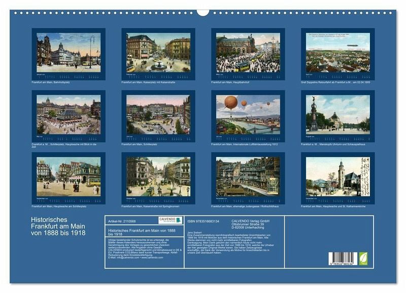 1888 bis 1918 mit Motiven aus dem historischen Frankfurt am Main. Insbesondere sind seltene Bilder der ehemeligen Judengasse und des historischen Rothschildhauses auf der November-Seite dieses Kalenders enthalten.