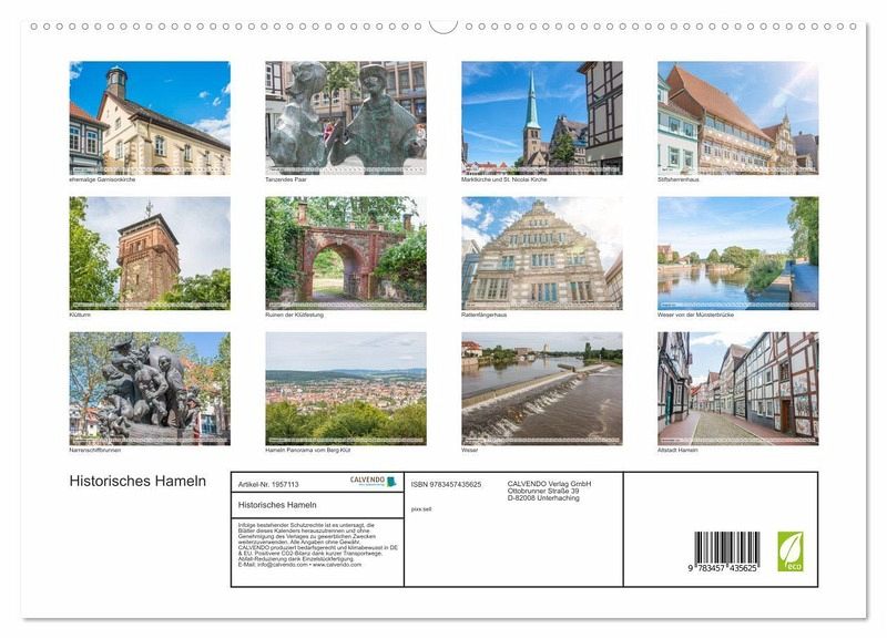 Der Kalender nimmt Sie mit auf einen Rundgang durch die historische Innenstadt von Hameln und zeigt Ihnen eine Auswahl der schönsten und prachtvollsten Bauten und Denkmäler. Eine Zeitreise von beeindruckenden Kirchen, eindrucksvollen Gebäuden und Persönlichkeiten.