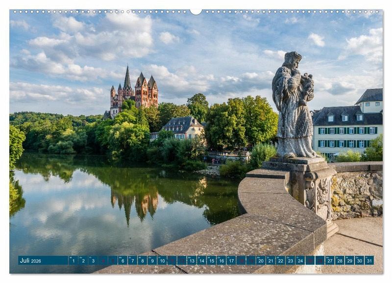 Juli: Lahnbrücke mit Nepomuk-Statue, Dom im Hintergrund
