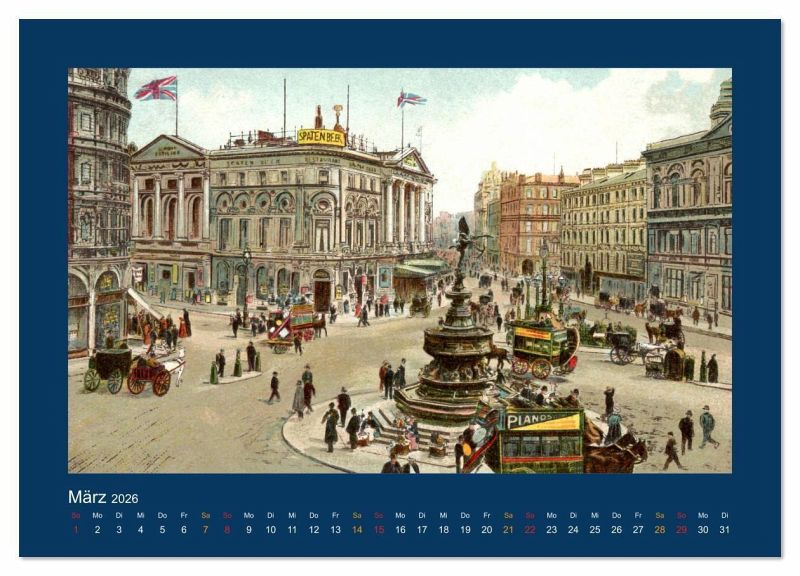 Eine Zusammenstellung reprofotografisch bearbeiteter Ansichtskarten von 1888 bis 1918 mit seinerzeit colorierten Motiven aus dem historischen London. Alle Reprofotografien wurden eigens für diesen Kalender mit modernster und leistungsfähiger Bildbearbeitungs-Software retuschiert und nachbearbeitet, weil die Original-Postkarten (dem Alter von mehr als 100 Jahren entsprechend) zum Teil stark verschmutzt und beschädigt sind. Durch meisterhafte Bildbearbeitung wurden Abbildungen von bestmöglicher Qualität aus diesen seltenen antiquarischen Bild-Quellen gewonnen.