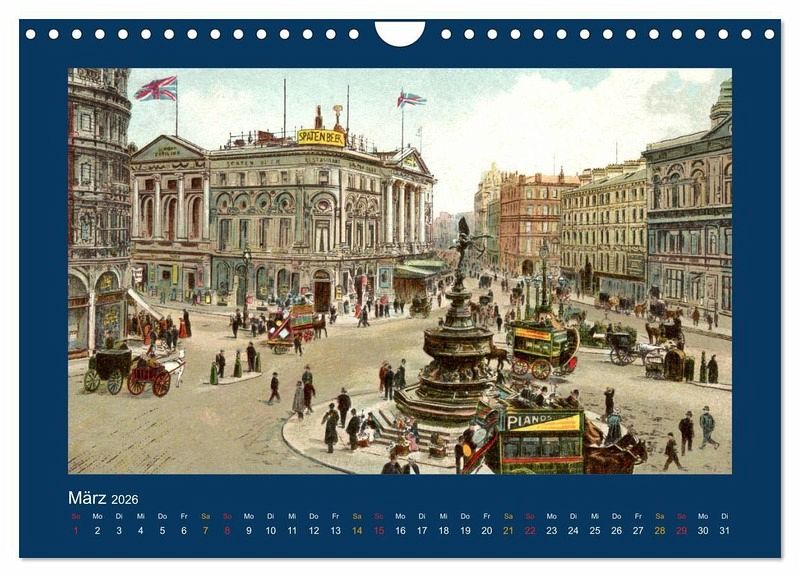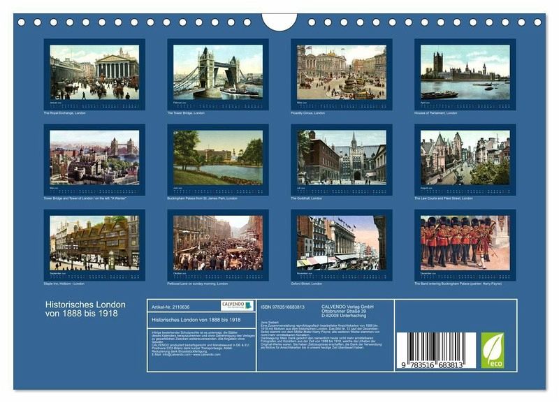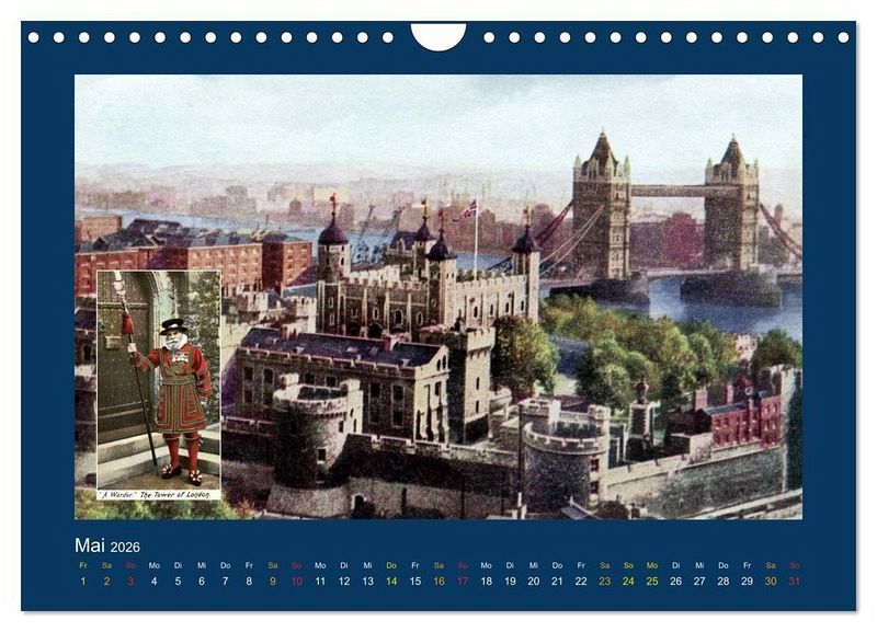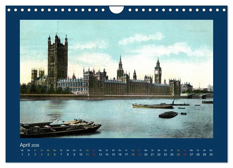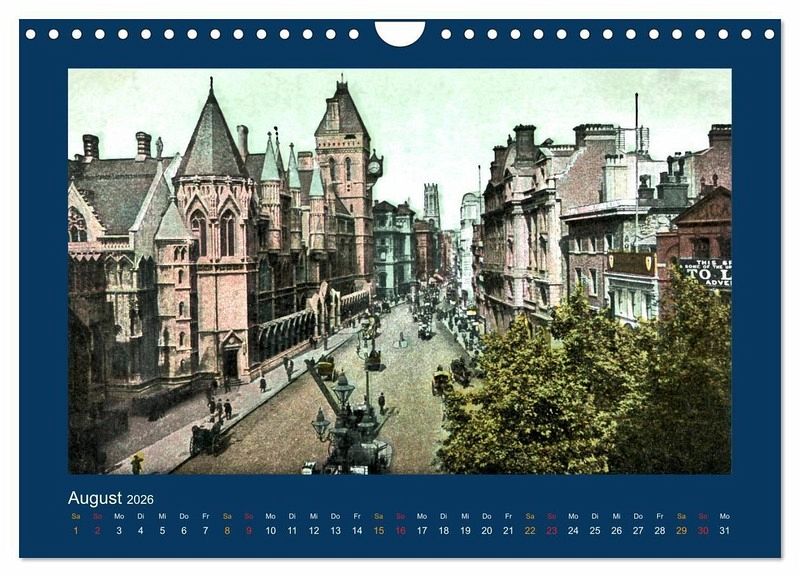Eine Zusammenstellung reprofotografisch bearbeiteter Ansichtskarten von 1888 bis 1918 mit seinerzeit colorierten Motiven aus dem historischen London. Alle Reprofotografien wurden eigens für diesen Kalender mit modernster und leistungsfähiger Bildbearbeitungs-Software retuschiert und nachbearbeitet, weil die Original-Postkarten (dem Alter von mehr als 100 Jahren entsprechend) zum Teil stark verschmutzt und beschädigt sind. Durch meisterhafte Bildbearbeitung wurden Abbildungen von bestmöglicher Qualität aus diesen seltenen antiquarischen Bild-Quellen gewonnen.