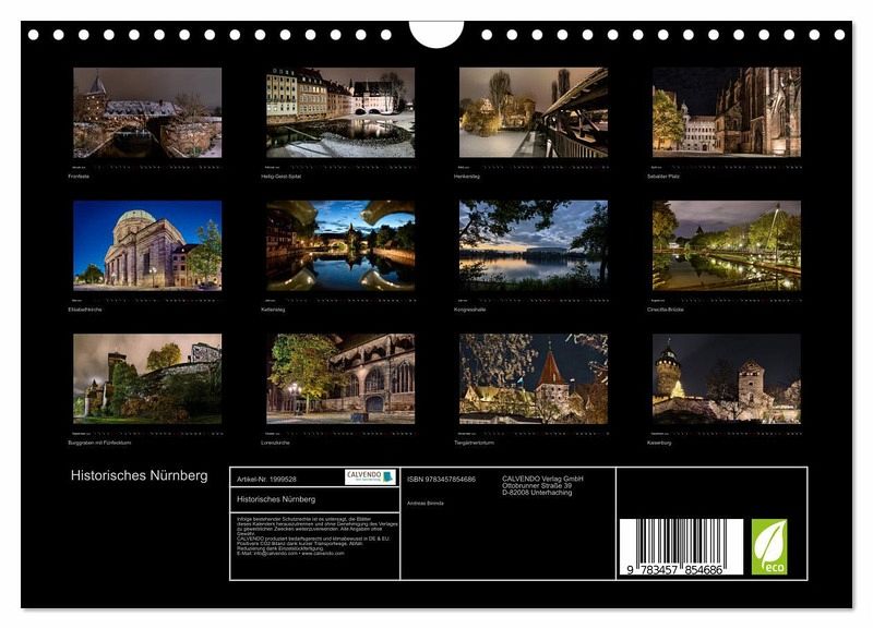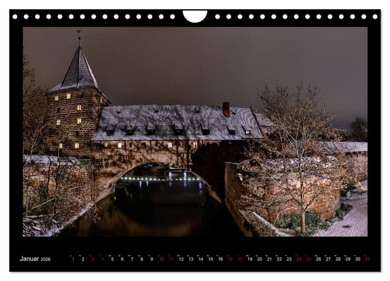 Auf 12 beeindruckenden Bildern zeigt der Kalender einige der vielen Wahrzeichen Nürnbergs. Die stimmungsvollen Aufnahmen zeigen auch ungewöhnliche Anblicke Nürnbergs.