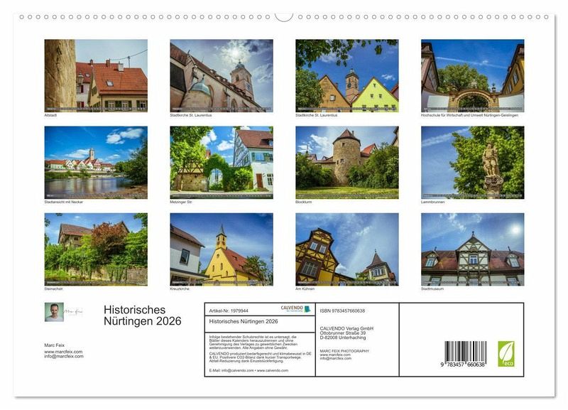 Begleiten Sie den Fotografen Marc Feix auf eine Reise durch die historische Innenstadt von Nürtingen. Von der beeindruckenden Stadtkirche St. Laurentius über den mittelalterlichen Blockturm bis zum historischen Stadtmusem, dem alten Schützenhaus von 1565. Lassen Sie sich das ganze Jahr über von diesen 12 einmaligen Aufnahmen aus ungewöhnlichen Blickwinkeln auf die mittelalterliche Stadt am Neckar begleiten und begeistern.