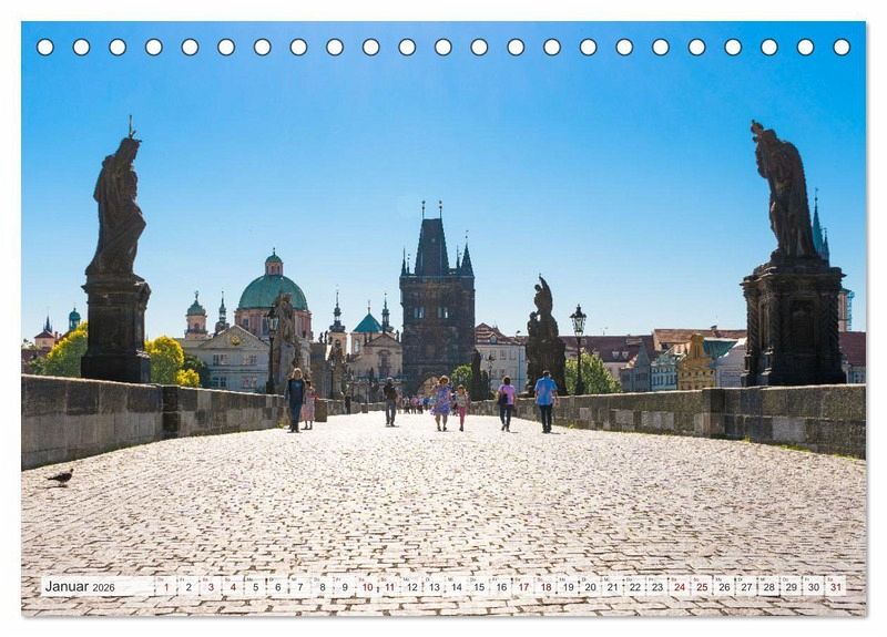 Der Kalender entführt den Betrachter jeden Monat an einen anderen Ort und eine andere Sehenswürdigkeit von Prag, der Hauptstadt von Tschechien.
