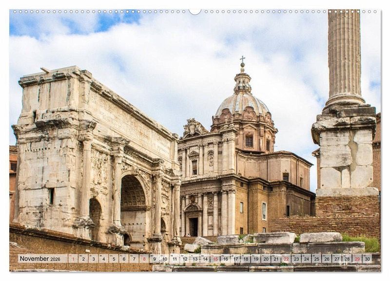 Eindrucksvolle Ruinen, imposante historische Bauten und prachtvolle Fassaden, all das bietet die italienische Metropole Rom. Der Kalender nimmt Sie mit auf einen Rundgang durch die historische Altstadt der italienischen Millionenstadt.