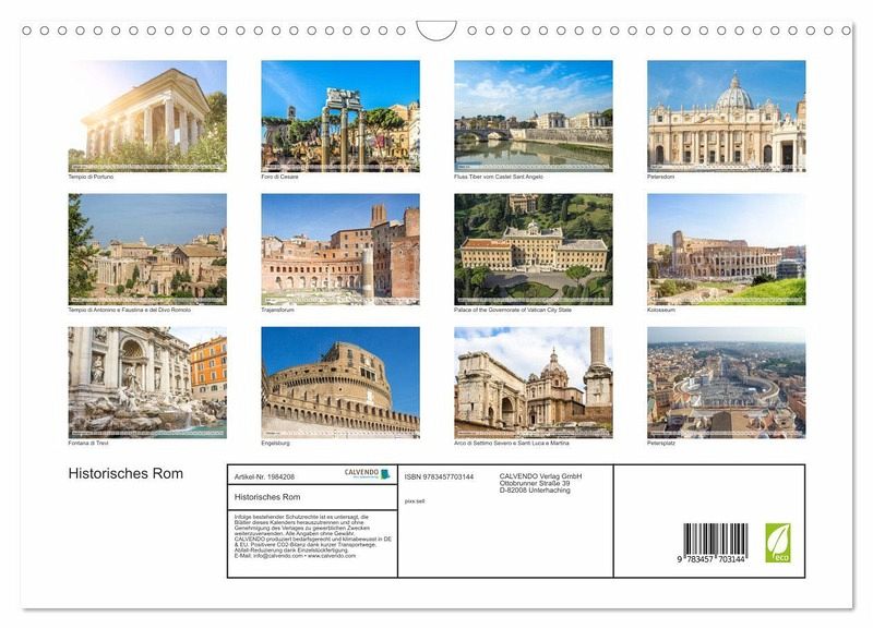 QUALITÄT - Hochwertiger Fotokalender mit 12 wunderschönen Motiven auf lichtbeständigem Bilderdruckpapier, robuste Spiralbindung mit Aufhängebügel.NACHHALTIG - deutliche Abfallreduzierung durch bedarfsgerechte Einzelstückfertigung, umweltfreundliches FSC-zertifiziertes Papier, Produktion in Deutschland, klimabewusste Logistik.PERFEKTES GESCHENK - Kalender für Freunde und Familie, für Kinder und Erwachsene, jung und alt, zu Weihnachten, Geburtstag oder zwischendurch.VIELFALT - Bildkalender in verschiedenen Formaten, z.B. DIN A5, DIN A4, DIN A3 sowie DIN A2. Ob Naturmotiv, Gemälde oder Fotos, ideal für ein persönliches Wohlfühlambiente.Der Kalender gibt Einblicke in die ehemalige Hauptstadt des Römischen Reichs und das kulturelle Zentrum Italiens, Rom. von Autor(in): Fabian Junge