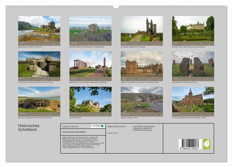 PREMIUM-LINIE - Brillanter Fotokalender mit 12 wunderschönen Motiven, Kunstdruck in Hochglanz in Museumsqualität.QUALITÄT - edle Materialien, stabile Rückwand mit 2 innovativen Einstecktaschen für eine optimale Präsentation an der Wand.NACHHALTIG - deutliche Abfallreduzierung durch bedarfsgerechte Einzelstückfertigung, umweltfreundliches FSC-zertifiziertes Papier, Produktion in Deutschland, klimabewusste Logistik.PERFEKTES GESCHENK - Kalender für Freunde und Familie, für Kinder und Erwachsene, jung und alt, zu Weihnachten, Geburtstag oder zwischendurch.Eine Reise in die schottische Vergangenheit mit wunderschönen Fotografien von Castles und Cathedrals von Autor(in): Andrea Potratz.