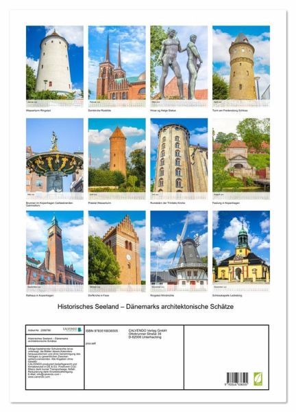 Ein kunstvoll gestalteter Kalender, der die bedeutendsten historischen Bauwerke und versteckten architektonischen Schätze der dänischen Insel Seeland in zwölf atmosphärischen Monatsmotiven präsentiert und dabei die kulturelle Vielfalt und Geschichte dieser einzigartigen Region lebendig werden lässt.
