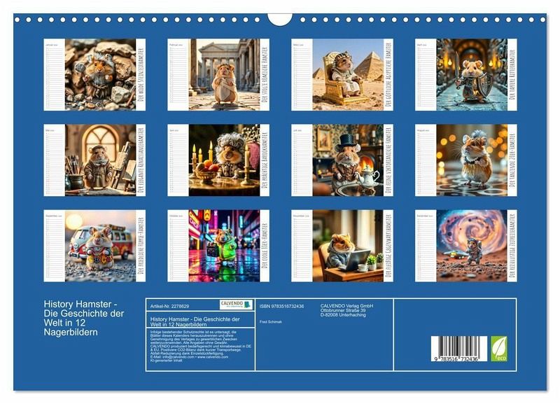 QUALITÄT - Hochwertiger Fotokalender mit 12 wunderschönen Motiven auf lichtbeständigem Bilderdruckpapier, robuste Spiralbindung mit Aufhängebügel.NACHHALTIG - deutliche Abfallreduzierung durch bedarfsgerechte Einzelstückfertigung, umweltfreundliches FSC-zertifiziertes Papier, Produktion in Deutschland, klimabewusste Logistik.PERFEKTES GESCHENK - Kalender für Freunde und Familie, für Kinder und Erwachsene, jung und alt, zu Weihnachten, Geburtstag oder zwischendurch.VIELFALT - Bildkalender in verschiedenen Formaten, z.B. DIN A5, DIN A4, DIN A3 sowie DIN A2. Ob Naturmotiv, Gemälde oder Fotos, ideal für ein persönliches Wohlfühlambiente.Ein Hamster reist durch die Epochen von Autor(in): Michaela Spreider